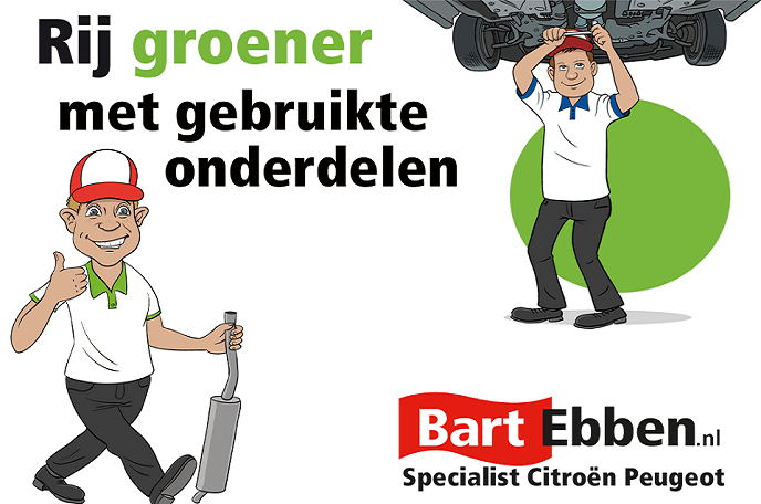 Onze nieuwe marketingcampagne richt zich dan ook op het groener rijden met gebruikte onderdelen. ‘Wij hopen dat meer en meer consumenten zich gaan beseffen dat een goed gebruikt onderdeel niet alleen voordeliger is dan een nieuw onderdeel, maar ook een veel duurzamere oplossing is’, aldus directeur Bart Ebben van het gelijknamige onderdelen- en demontagebedrijf. ‘Onze marketingcampagne is dan ook niet enkel en alleen ter promotie van ons bedrijf, maar ook een eerste aanzet tot het aanzwengelen van een discussie over de nieuwe versus gebruikte onderdelen.’
